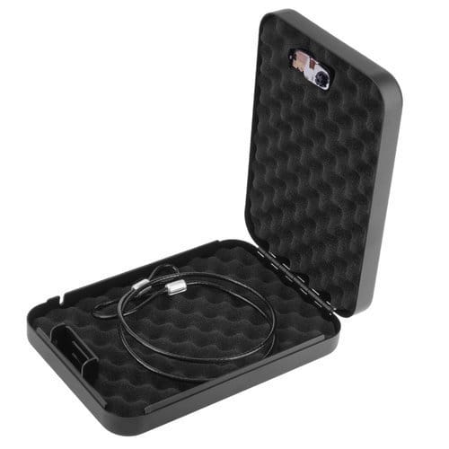 Dzięki dwóm otworom w tylnej ściance kasetkę można przykręcić do wybranej powierzchni lub użyć stalowej linki dołączonej stalowej linki o długości 90 cm, która będzie chroniła przed kradzieżą.