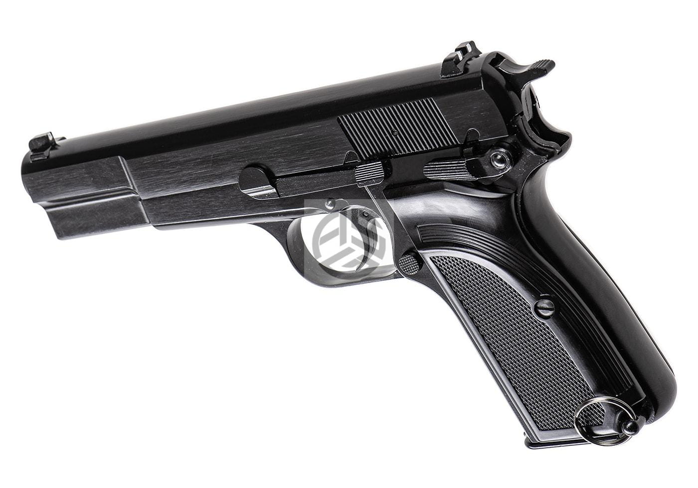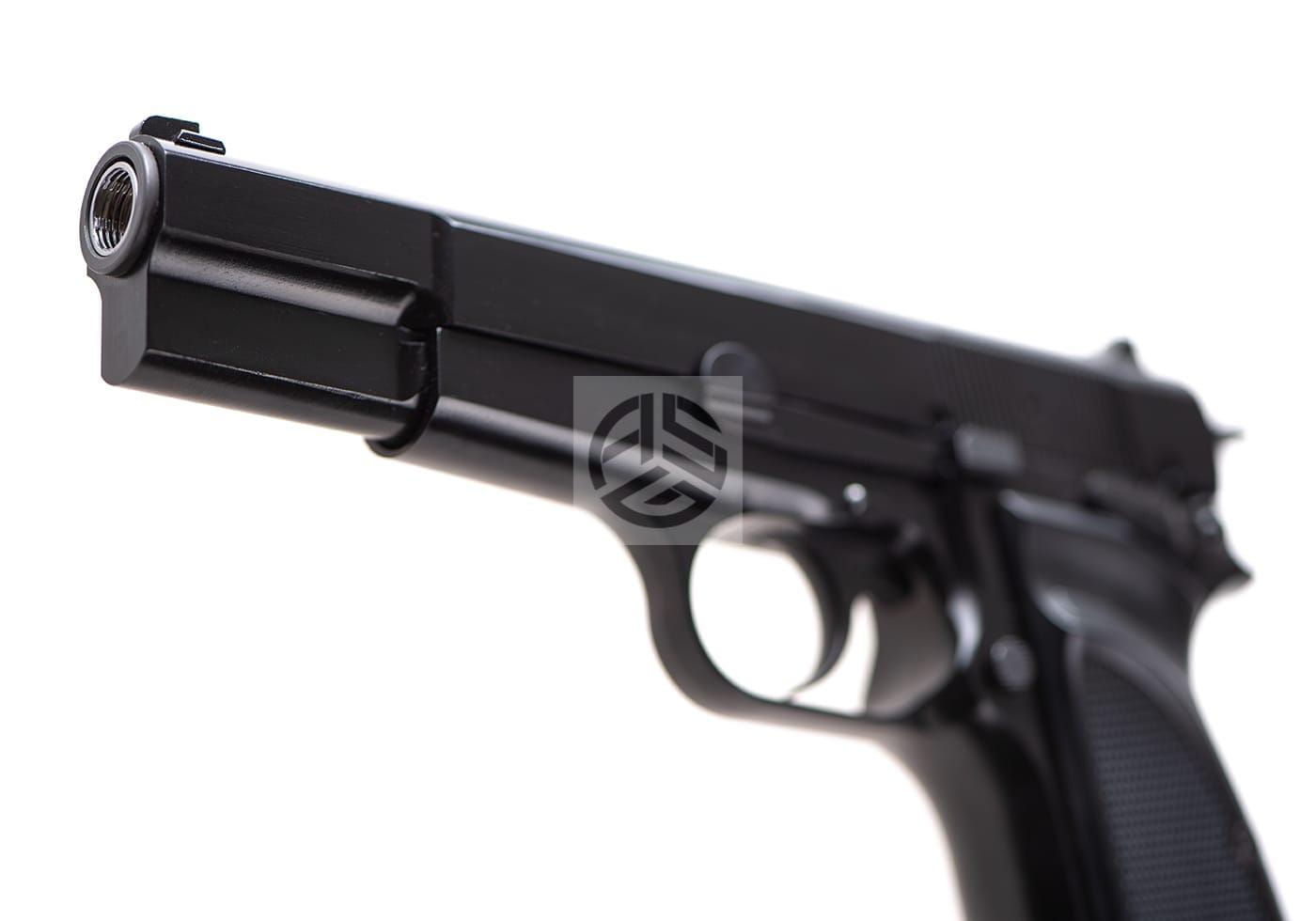 Gazowa replika pistoletu ASG Hi-Power MK3 Full Metal GBB Black wyprodukowana przez firmę WE.