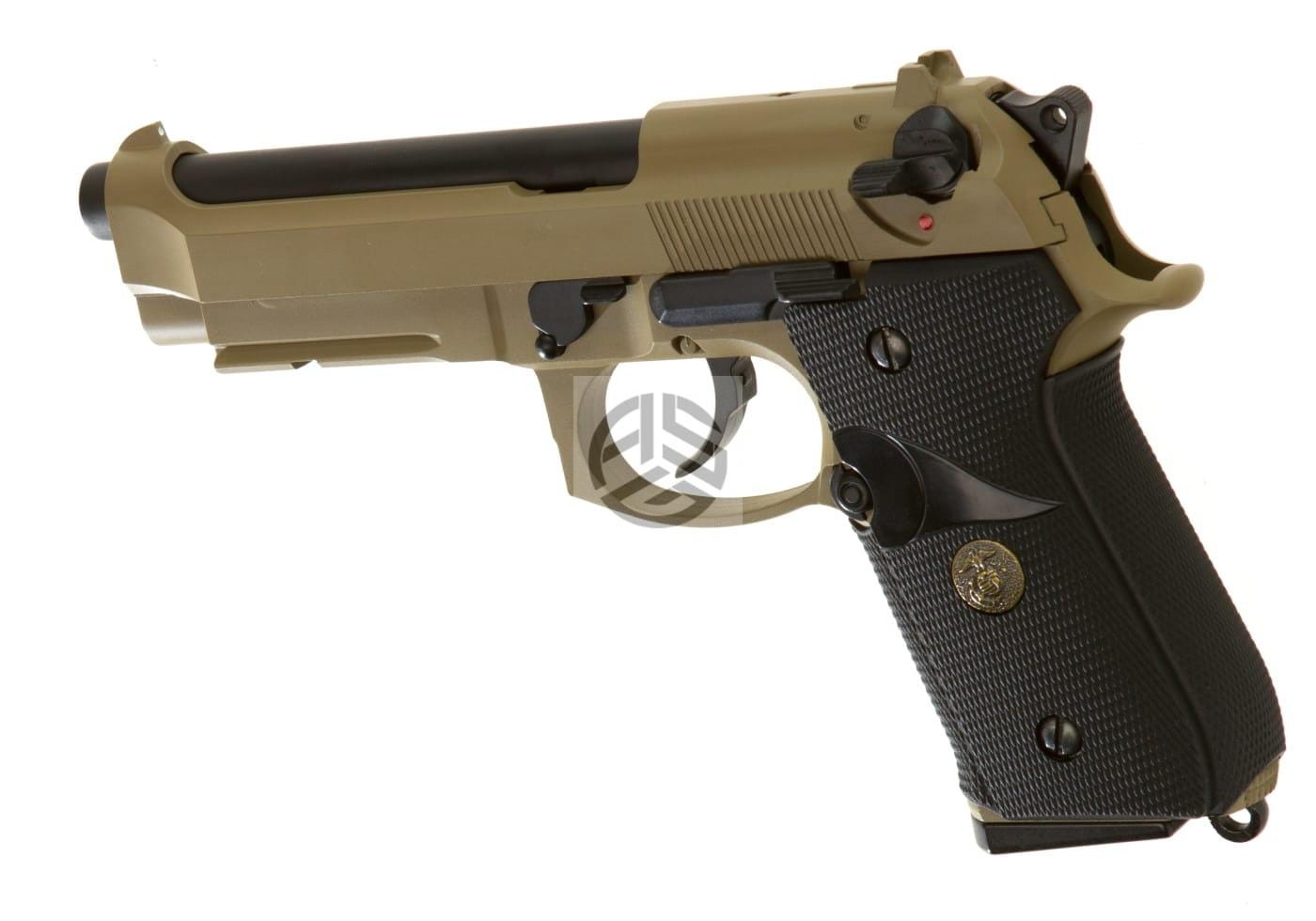 Gazowa replika pistoletu ASG M9 A1 Full Metal GBB Tan wyprodukowana przez firmę WE.