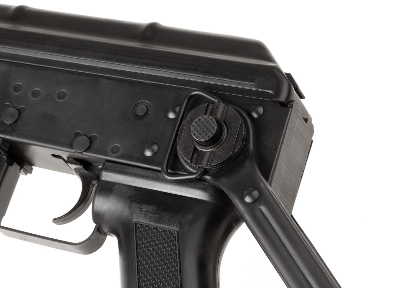 Karabin posiada składaną w pionie kolbę, co ułatwia transport oraz przechowywanie.